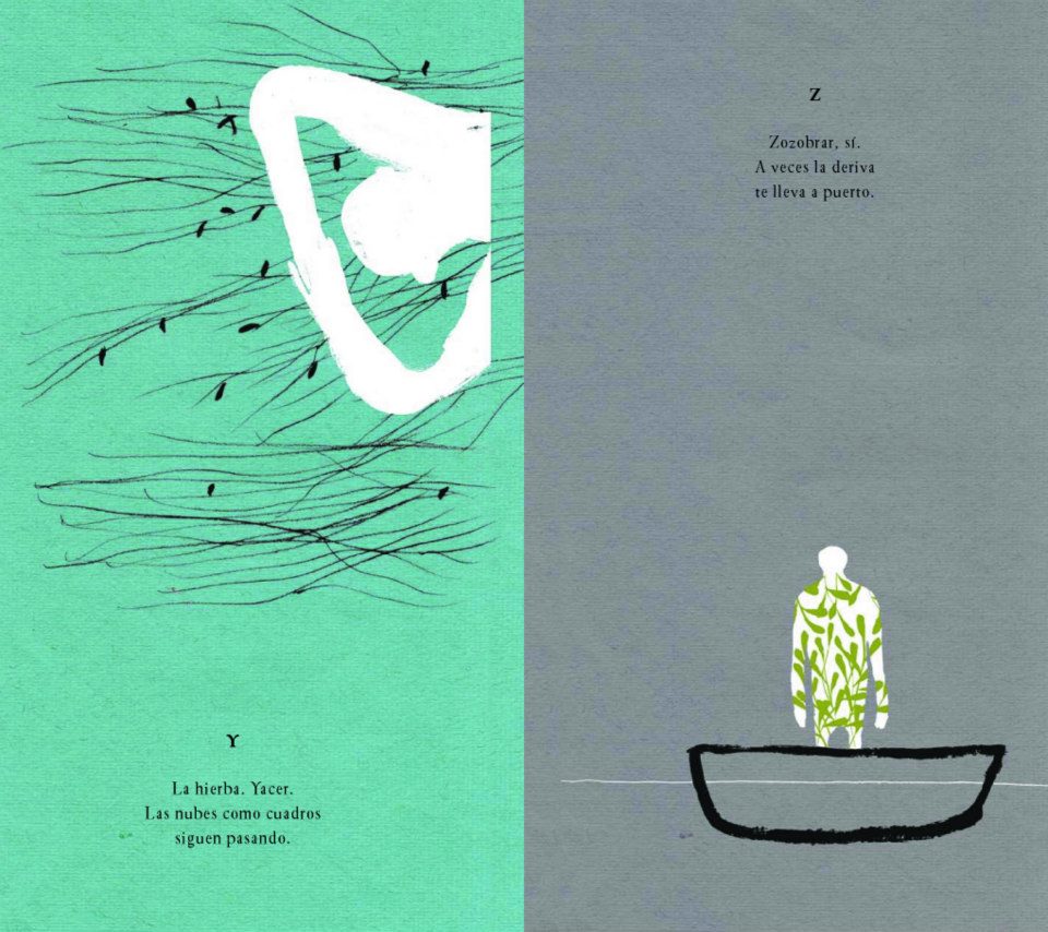 Es un abecedario, 27 letras con 17 sílabas cada una. Las maravillosas ilustraciones son de Guridi, que ilustró A lo bestia, y que, en esta ocasión, ha hecho un trabajo que, a mí, cuando por fin vi el resultado final, me dejó sin respiración. Una verdadera maravilla.