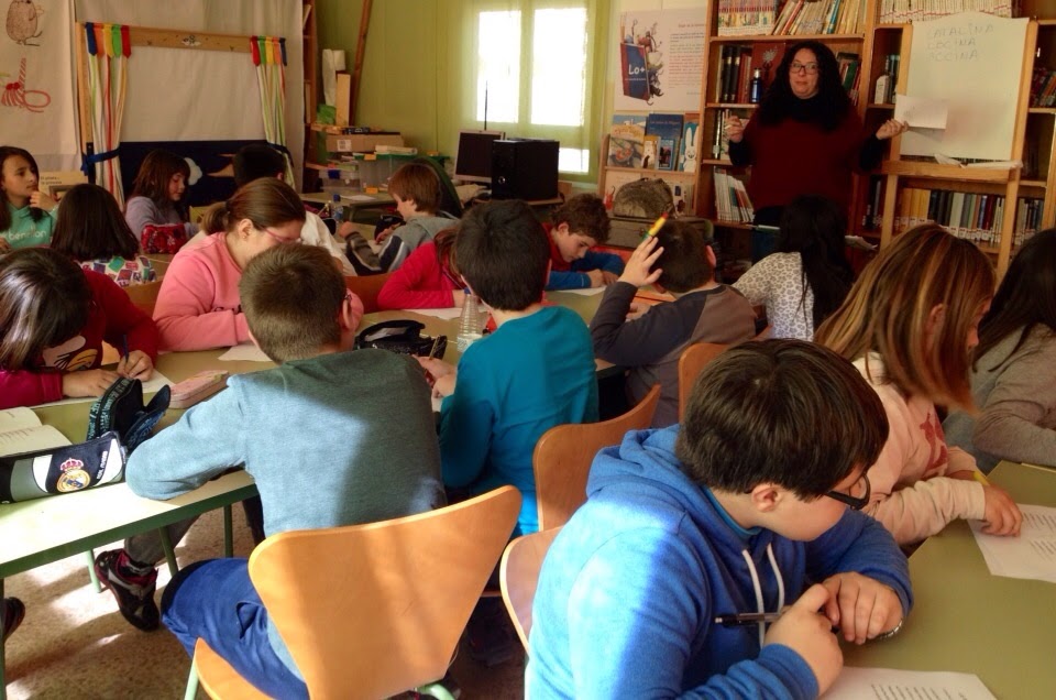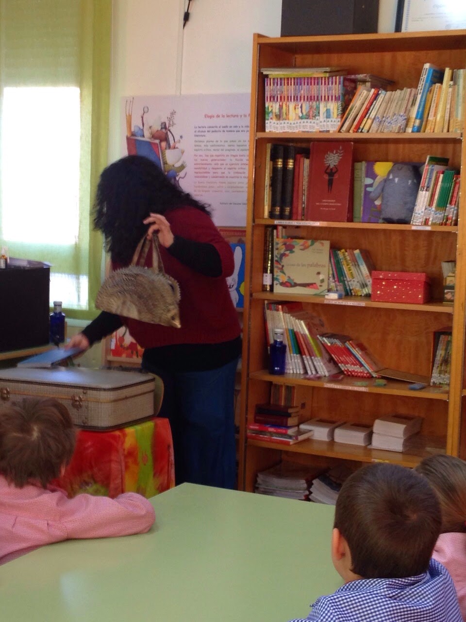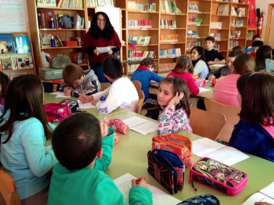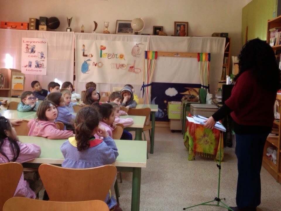 A pesar de que estaba bastante resfriada y del frío siberiano (jijiji) lo pasé genial.  El trabajo con los grupos fue estupendo, se rieron, crearon versos y bichos, disfrutaron de A lo bestia, en fin, todo el día, sin parar, contagiada por la magia de la poesía y los libros, ¡como a mí más me gusta!