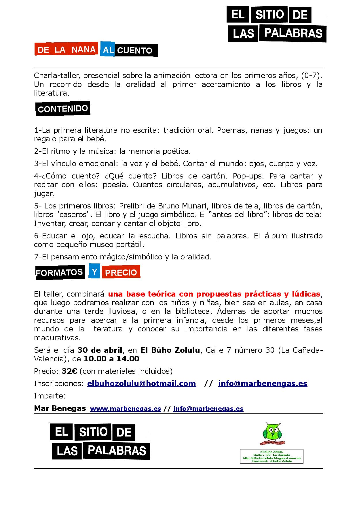 DE LA NANA AL CUENTO en El Búho Zolulu (La Cañada-Valencia)
